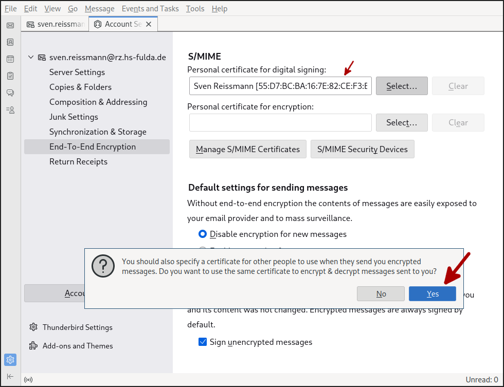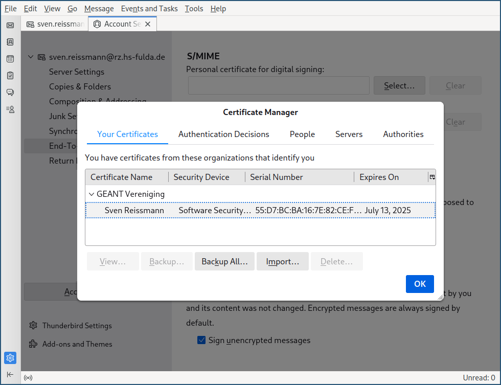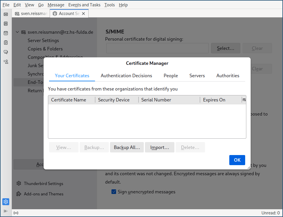 Zertifikat in E-Mail Client importieren