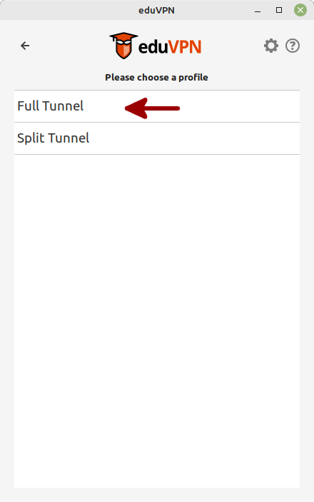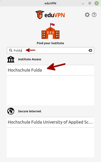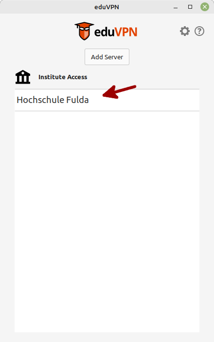 Starten Sie die Anwendung eduvpn-gui (alternativ ist mit eduvpn-cli auch ein CLI-Client verfügbar).