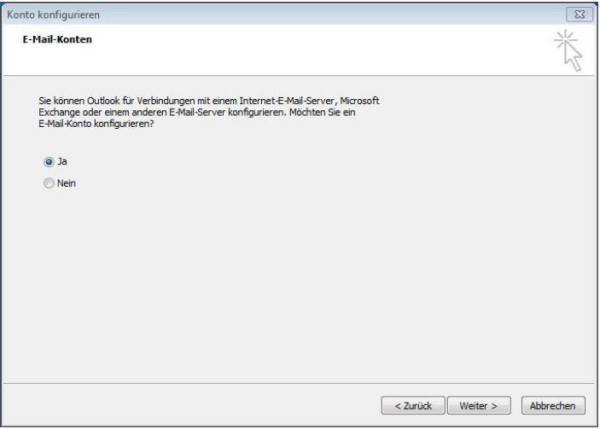Wählen Sie Mail (Microsoft Outlook), um ein neues Mailkonto zu erstellen