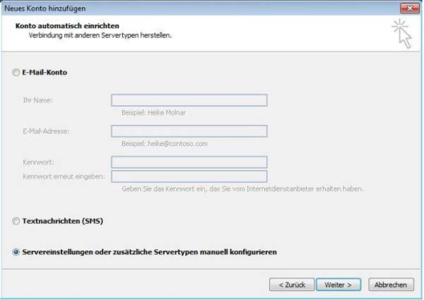 Wählen Sie Servereinstellungen … manuell konfigurieren und Weiter