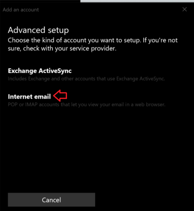 - Wählen Sie Sonstiges E-Mail-Konto hinzufügen aus.