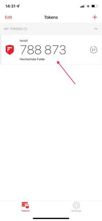 - Sie haben nun erfolgreich einen Schlüssel in die App „2FA Authenticator“ hinzugefügt. In der Mitte wird nun der erste Eintrag mit „horstl / Hochschule Fulda“ angezeigt.