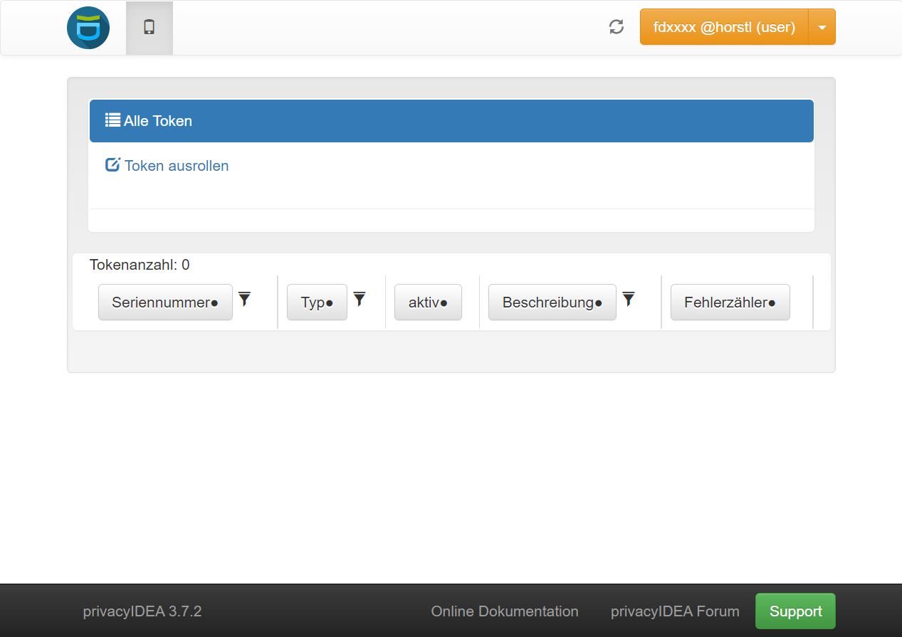 Anschließend erhalten Sie eine Übersicht Ihrer registrierten Tokens (zweiter Sicherheitsfaktor), von denen noch keine vorhanden sein sollten.