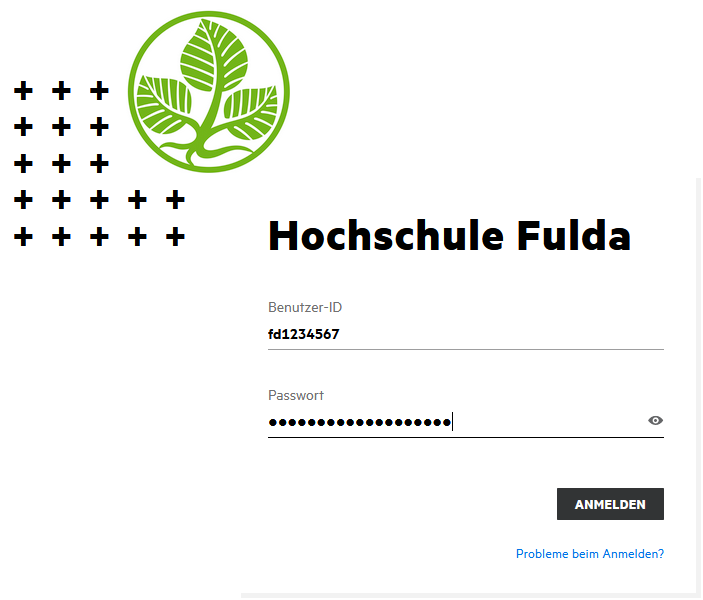 Öffnen Sie in Ihrem Browser die Webseite https://filr.hs-fulda.de und melden Sie sich mit Ihrer Benutzerkennung (fd-Nummer) und dem zugehörigen Passwort an.