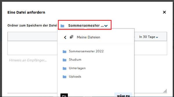 Sie haben die Möglichkeit, eine Datei von einem oder mehreren Benutzern anzufordern.