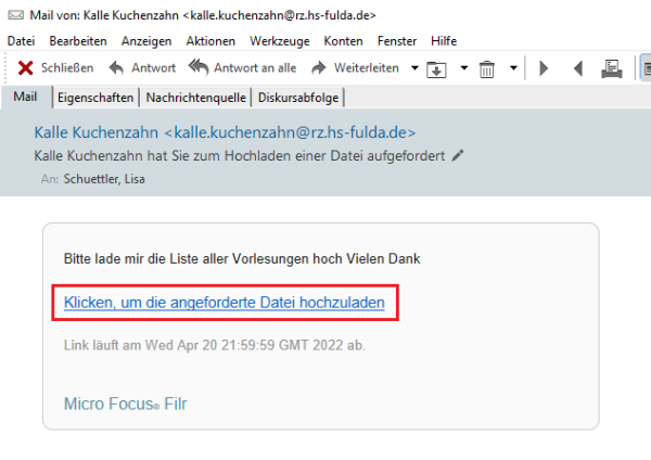 5. Es wird eine E-Mail mit einem Upload-Link an den Benutzer versendet.