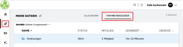 6. Im Bereich Meine Dateien kann man seine Freigaben, die man mit anderen Personen geteilt hat, anzeigen lassen.