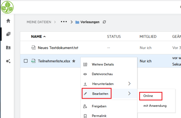 Sie haben die Möglichkeit, Dateien direkt online zu bearbeiten.