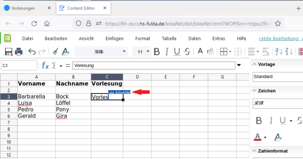 2. Die Datei wird im Browser geöffnet und kann nun bearbeitet werden. Eine Datei kann von mehreren Personen gleichzeitig bearbeitet werden. Markierungen machen deutlich, welche Personen welche Teile des Dokuments arbeiten.