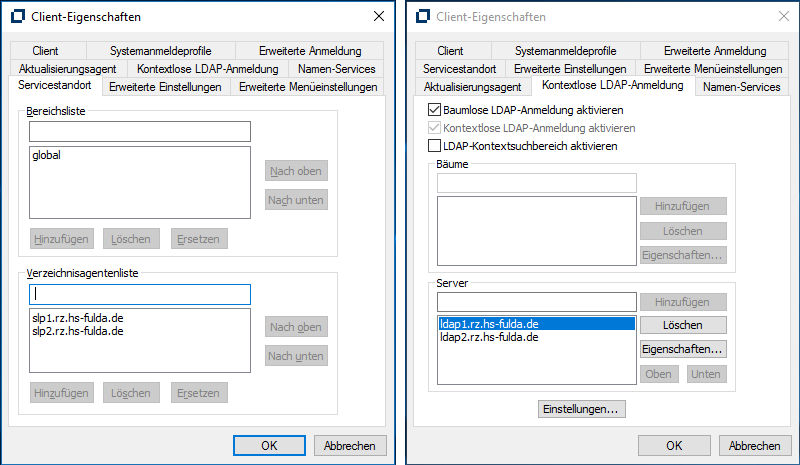 - Verzeichnisagentenliste: slp1.rz.hs-fulda.de und slp2.rz.hs-fulda.de