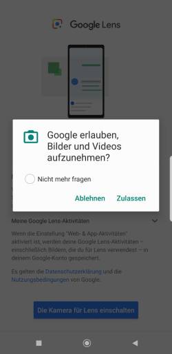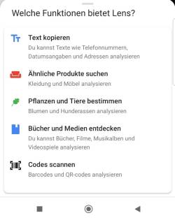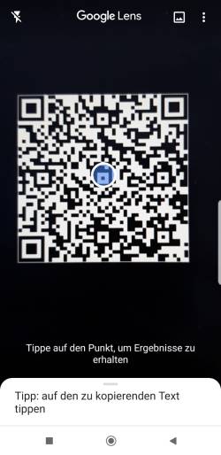Wenn Sie die Berechtigungen bestätigt haben öffnet sich nun Google Lens. Tippen Sie auf den erscheinenden blauen Punkt. Google Lens wird die Informationen verarbeiten und Ihnen den Inhalt unterhalb ausgeben. Wenn Sie darauf tippen öffnet sich Ihr Standardbrowser zum Öffnen den Inhaltes.