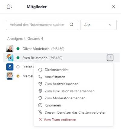 - Vom Team entfernen: Selbsterklärend, der Benutzer wird aus dem Team entfernt.