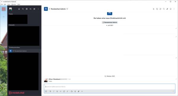 Direktnachrichten sind Nachrichten zwischen genau zwei Personen. Die Konversationen erscheinen in der linken Spalte des Rocket.Chat-Fensters, jedoch erst, wenn bereits eine Kommunikation mit dieser Person existiert.