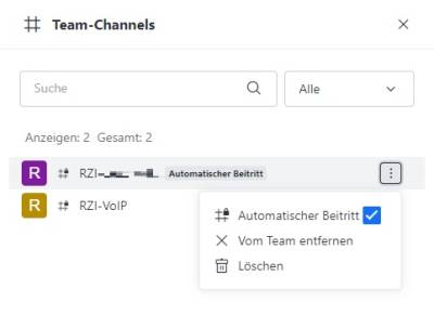 Durch Klick auf die drei Punkte neben einem Channel können Sie dann folgende Einstellungen vornehmen: