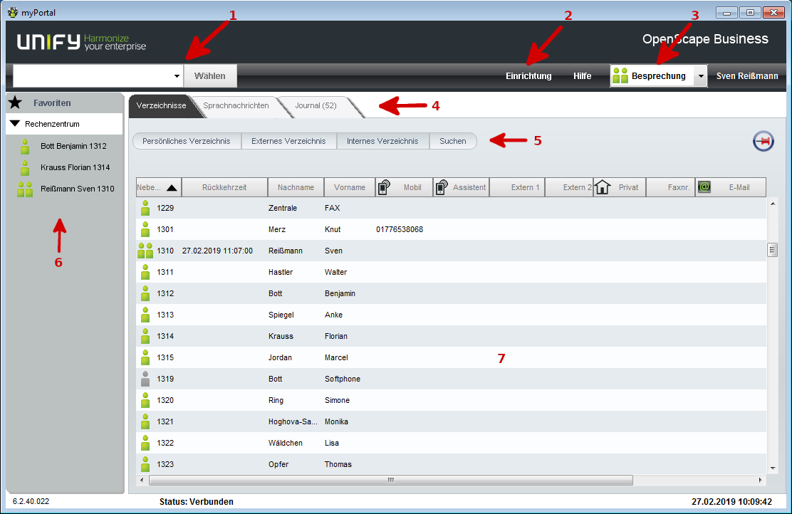 In der Abbildung ist das Hauptfenster der Anwendung myPortal dargestellt, das Ihnen Zugang zu allen wichtigen Funktionen bietet. Die mit Nummern gekennzeichneten Bedienelemente sind hier kurz beschrieben.