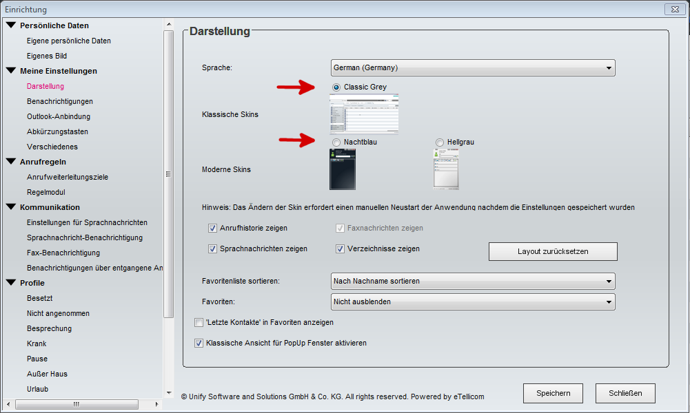 Um das Design zu ändern öffnen Sie die Einstellungen, wählen Sie Darstellung und wählen Sie das gewünschte Design aus.