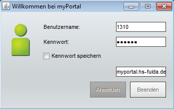 Um myPortal zu nutzen, öffnen Sie die Desktop-Anwendung und melden Sie sich am myPortal Server an. Verwenden Sie dazu folgende Login-Informationen.