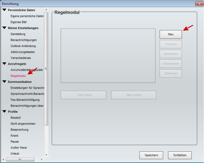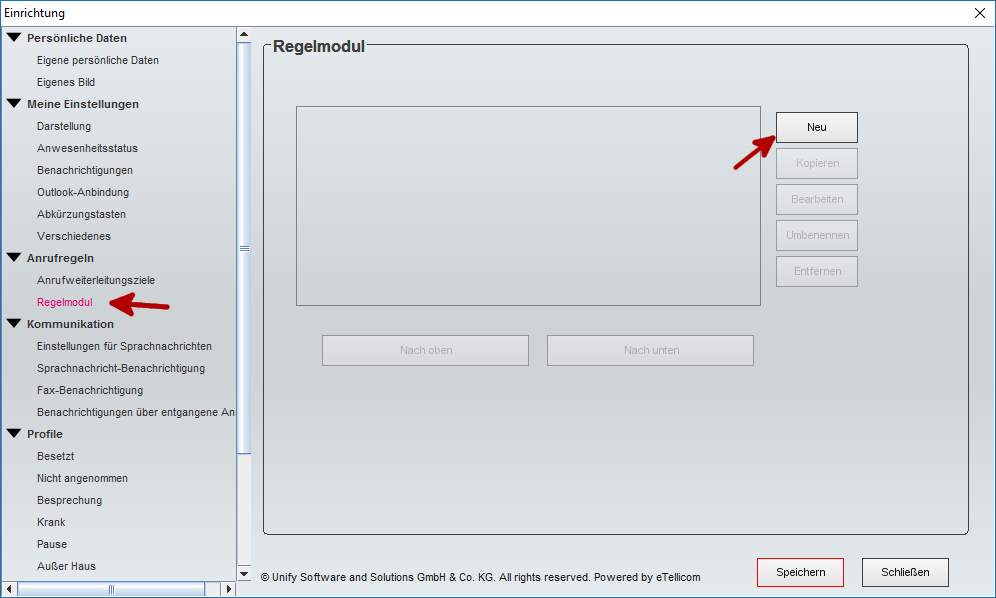 Um regelbasierte Anrufweiterleitungen einzurichten, öffnen Sie die Einstellungen und klicken Sie auf Regelmodul.