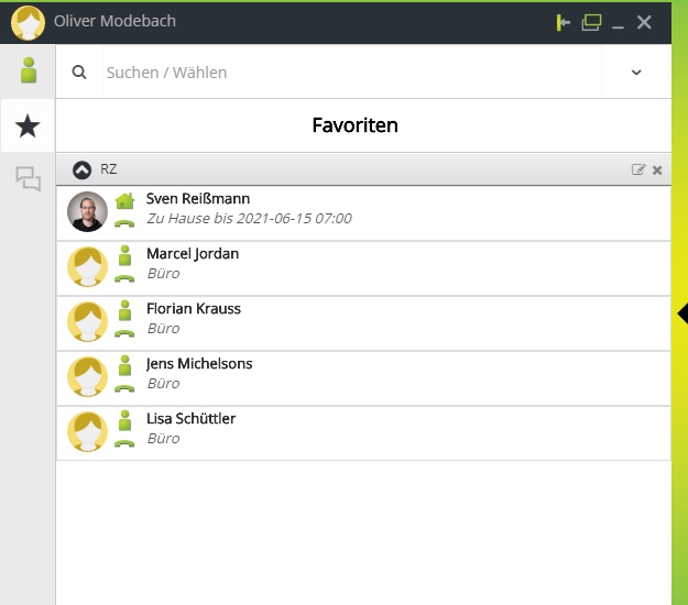 An dieser Stelle verwalten Sie Ihre häufig genutzten Kontakte. Es muss sich um interne Teilnehmer handeln, das hinzufügen von externen Nummern zur Favoritenliste ist an dieser Stelle nicht möglich.