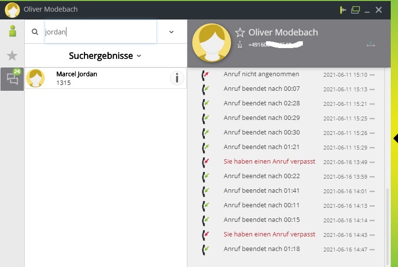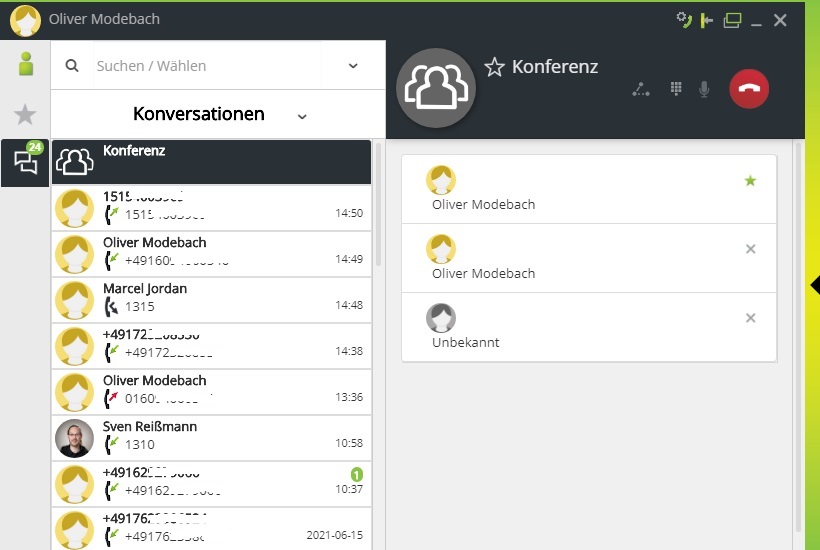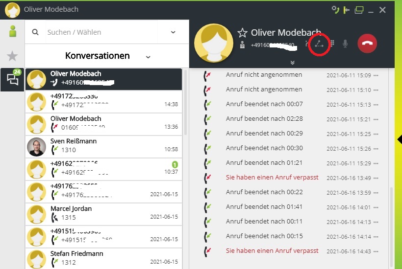 Im gezeigten Screenshot sind externe Rufnummern unkenntlich gemacht!