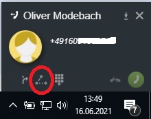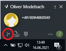 Sie befinden sich in einem Gespräch und wollen dieses weiterleiten. Sie können die Weiterleitung sowohl im Hauptfenster der myPortal@work-Anwendung einleiten, oder auch im Popup-Fenster im Bereich des Windows-Systrays.