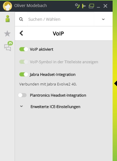 Die Softphone-Funktion erlaubt Ihnen, mittels eines geeigneten Headsets, Ihren PC als Telefon zu nutzen. Dafür steht Ihnen ein grundlegender Funktionsumfang bereit.