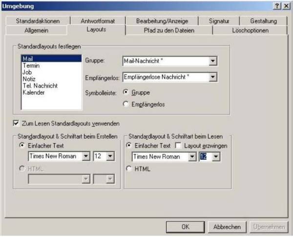 In der Menüleiste gehe Sie bitte zuerst auf: Werkzeuge → Optionen → Umgebung → Layouts