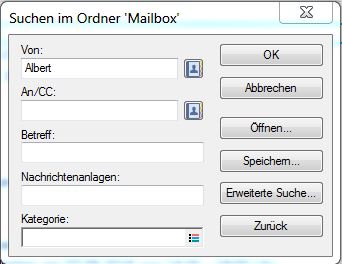 Will man differenzierter suchen, dann sollte man auf die Lupe klicken jetzt kann man ganau eingeben, wo man suchen will. Nachrichtenanlagen durchsucht den E-Mail-Text.