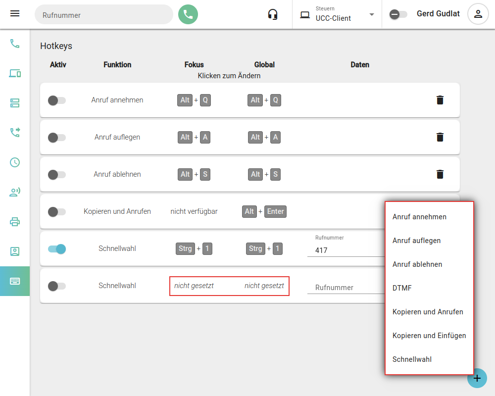 Der UCC-Client unterscheidet zwei Typen von Hotkeys: