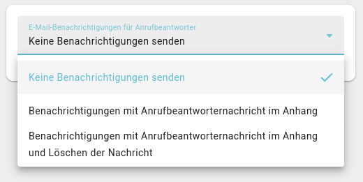 Wählen Sie unter E-Mail-Benachrichtigungen für Anrufbeantworter die gewünschte Option und klicken Sie anschließend auf Speichern um die Einstellung zu übernehmen.