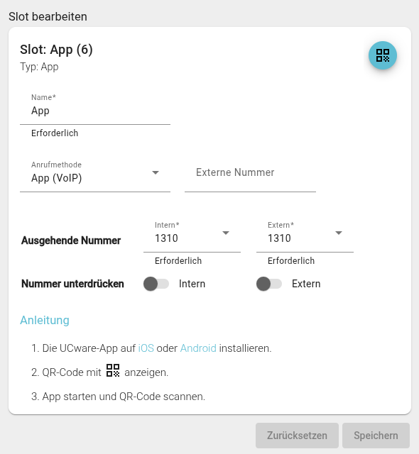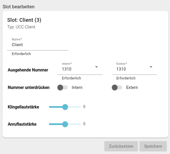 Ein Klick auf die Rufnummer selbst öffnet deren Detailkonfiguration.
