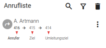 Wird ein aktueller Anruf auf die Durchwahl eines anderen Benutzers umgeleitet, zeigt der UCC-Client dies wie folgt an: